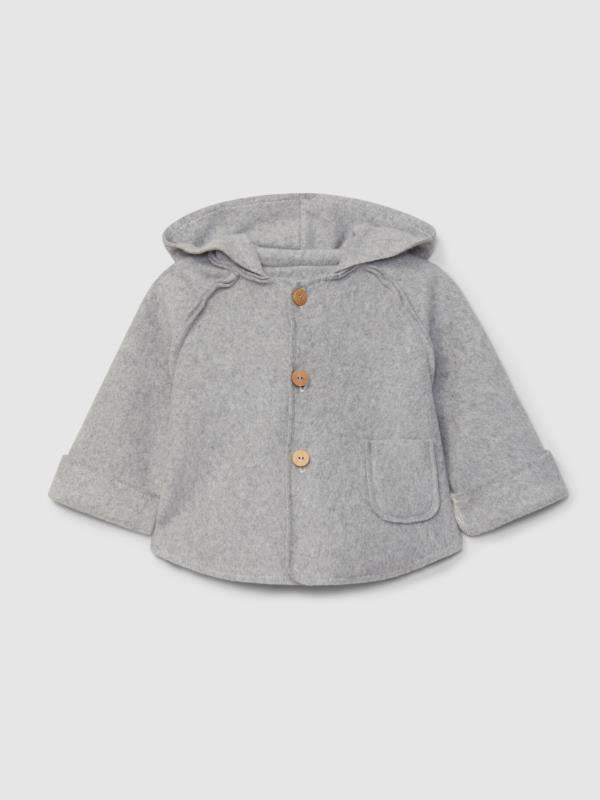 Abrigo con capucha de polar 100% algodón orgánico suave y cálido con efecto de costuras exteriores. Bolsillo funcional al frente. Cierra con botones de madera a todo lo largo. El proceso de teñido de Gots utiliza aproximadamente un 60% menos de agua.