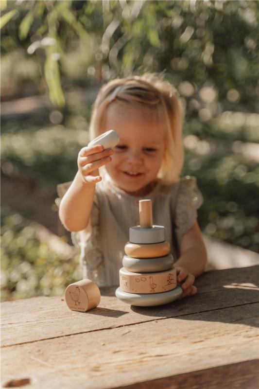 Esta divertida torre de madera apilable con temática Little Farm está especialmente diseñada para desarrollar la coordinación mano-ojo a través de la diversión y el juego práctico. Se anima a los niños a colocar los anillos de madera en el orden correcto y apilarlos en la torre.