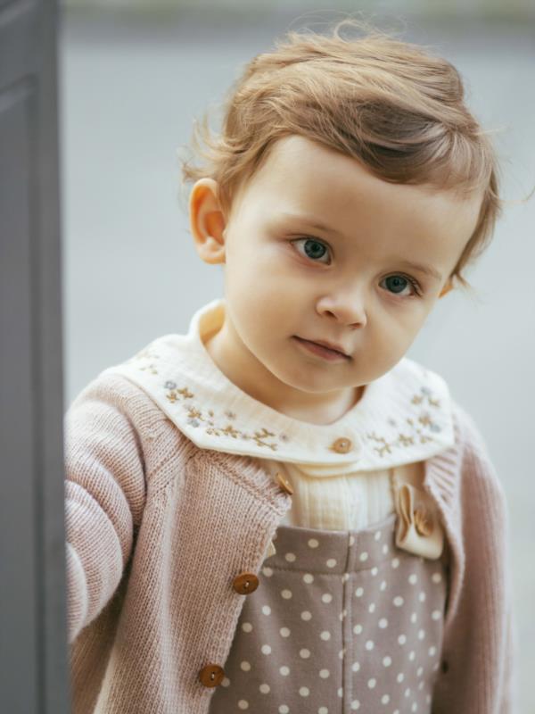 Blusa de muselina 100% algodón orgánico. Cuello con bordado de lana efecto artesanal. Cierra con botón de madera en el cuello y broches ocultos al frente y a todo lo largo.