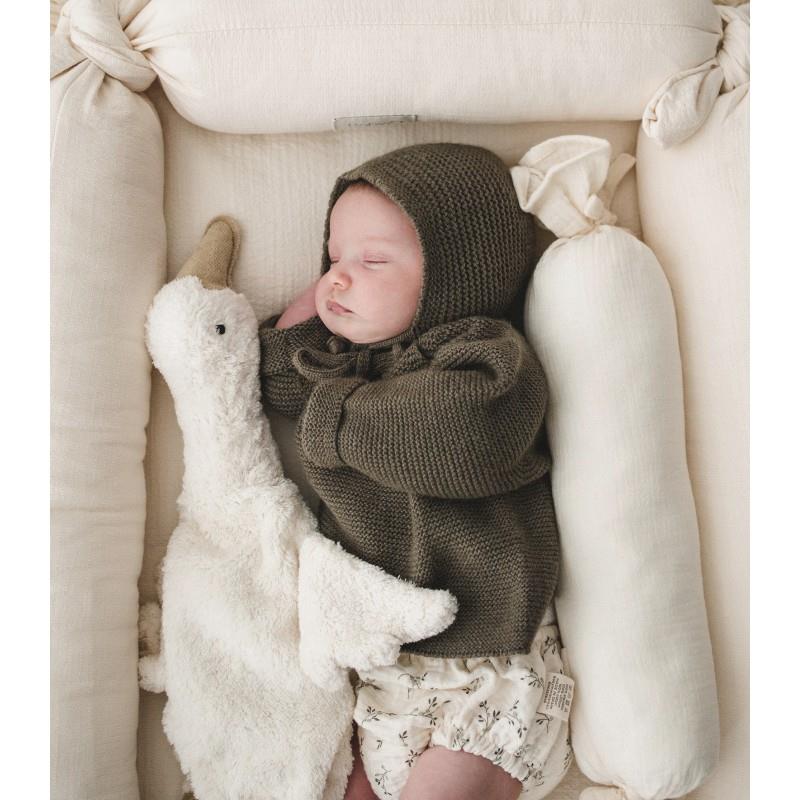 Cojín en forma de bombón para evitar que el niño vuelque. Actúa como barrera protectora impidiendo que los bebés se giren sobre su costado y se queden boca abajo. Sin embargo, los cojines antivuelco dejan libre la cabeza del bebé para que pueda moverla y tenga distintos puntos de apoyo, favoreciendo así el desarrollo del cráneo. CARACTERÍSTICAS: Relleno interior espeso MEDIDAS: 36 x 9 x 9 cm COMPOSICIÓN: 100% algodon orgánico FABRICADO EN: España