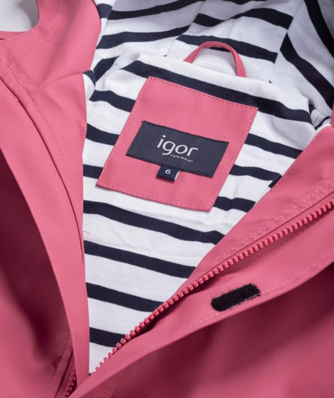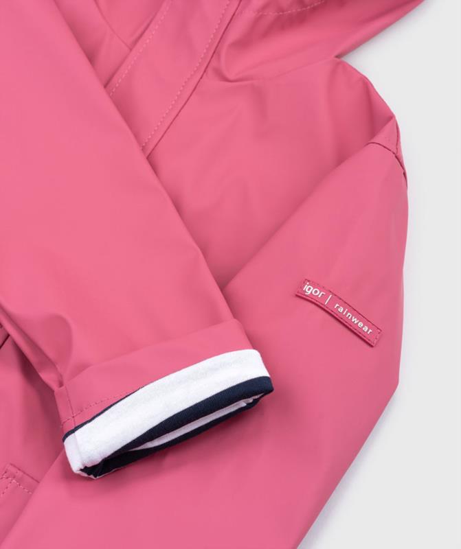 Chubasquero clásico impermeable con bolsillos frontales, solapa y forro interior de algodón a rayas. - Lavar a máquina del revés. - Utilizar agua fría y un programa para prendas delicadas con centrifugado suave. - No usar secadora.