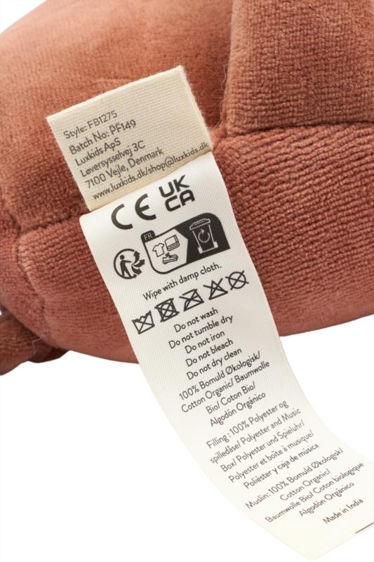 "Cute and soft Fabbie Music Box - Bear for quiet moments with a fine little tune, so your little one can have a restful moment. The bear holds a muslin cloth, which is made from 100% organic cotton and perfect for your baby to cuddle with. Age recommendation: 0M+ EU Toy Safety Standard - CE"