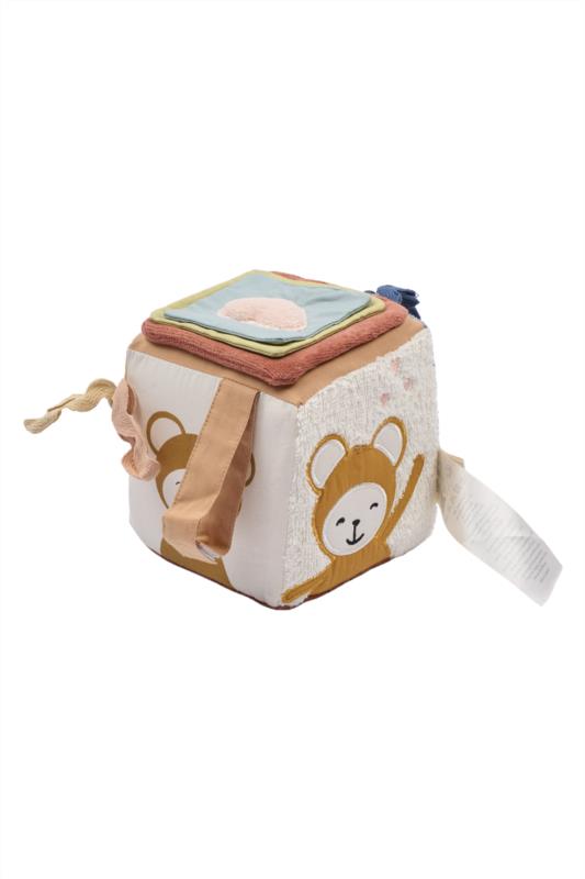 "Fabelab's Fabric Cube is a playful toy for the babies. A perfect on-the-go toy to strap onto the stroller, bedside or car seat to let your little one explore the different beautiful colours, textures and shapes. Fabelab's Fabric Cube contains many activities that stimulate the baby’s senses! The Cube lets your little one develop senses and skills and it's the perfect size for a little hand. Age recommendation 0m+ EU Toy Safety Standard - CE"