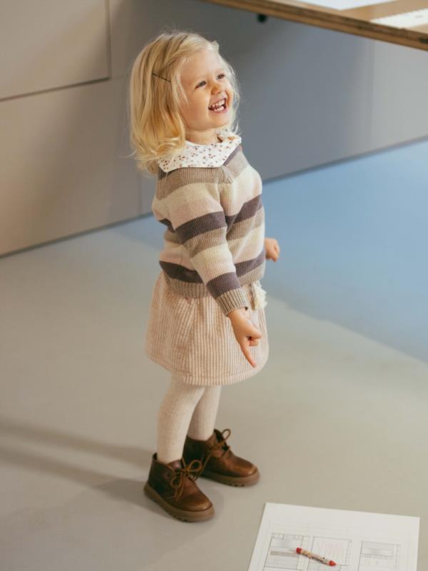 Falda de terciopleo acanalado 100% algodón orgánico con detalle de cordón con pompón con un toque de lana y cachemir.
