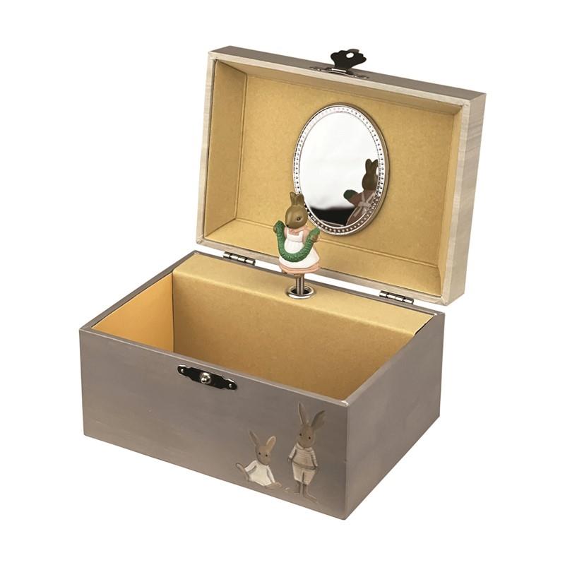 Este bonito joyero musical con temática de cumpleaños es perfecto para guardar todos tus tesoros. Experimenta al conejo bailando al son de "ANNIVERSARY SONG" cuando abras esta hermosa caja.