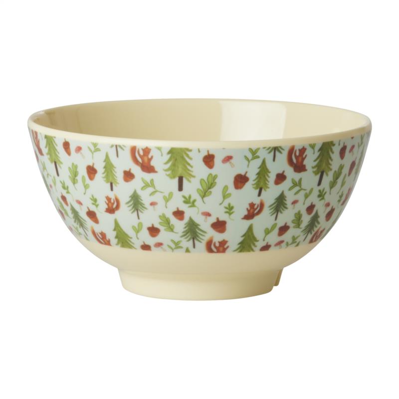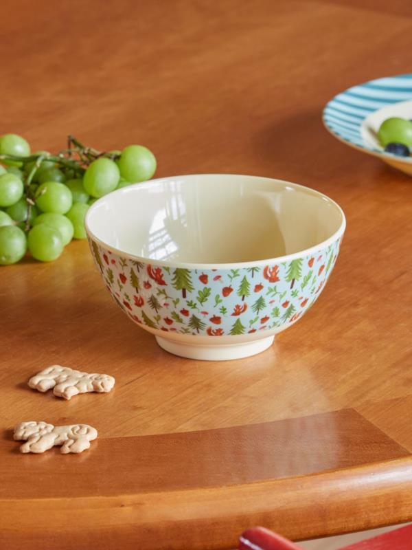 Nuestro divertido bol mediano de melamina con bonitas ardillas y bellotas sobre un fondo azul - ¡llamamos a este estampado "Happy Forest" (Bosque Feliz)! Está diseñado para dar color a tu mesa y alegría a los más pequeños de la familia. Perfecto para cereales de la mañana o la merienda de mediodía. Ten en cuenta que este producto no es apto para el microondas.