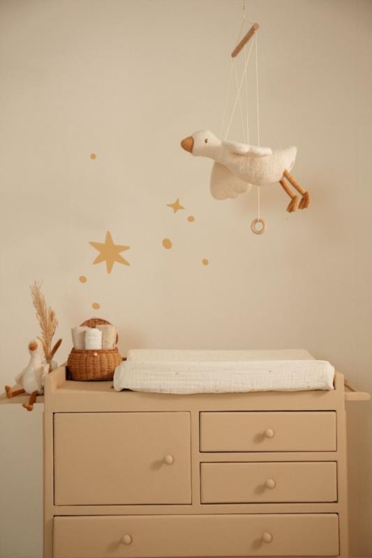 Deja que la Pequeña Oca flote con gracia por la habitación y traiga un toque de tranquilidad y encanto a la habitación infantil. Con su elegante forma y su suave apariencia, parece volar por los aires, perfecto para una atmósfera de ensueño. Su diseño ligero y diáfano crea una atmósfera alegre y serena, y se integra a la perfección en cualquier habitación infantil. Fácil de colgar, despierta la imaginación y crea un ambiente cálido y relajante. Deja que tu pequeño se duerma bajo las alas de Pequeña Oca. Nota: Este es un artículo decorativo. Mantener fuera del alcance de los niños.