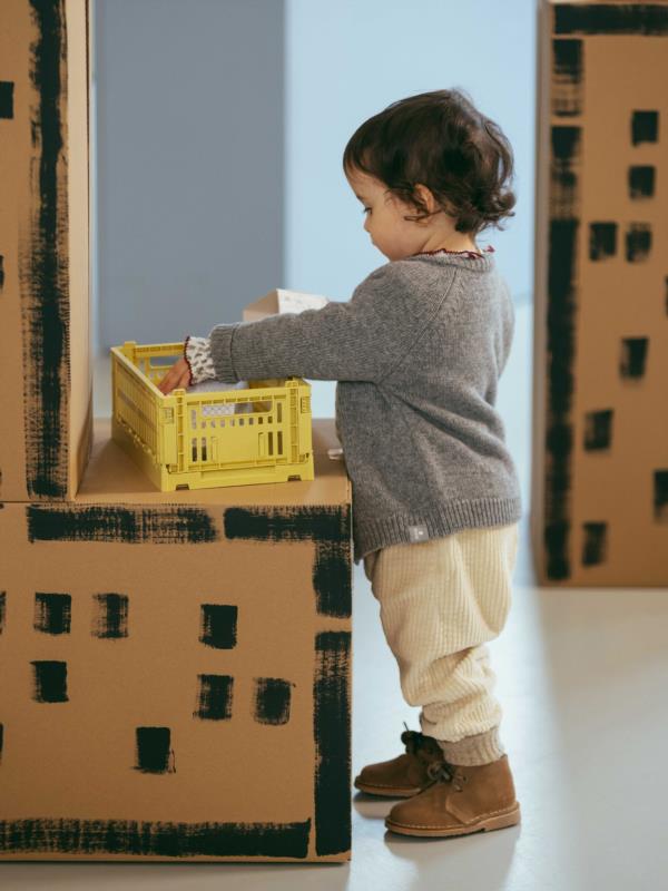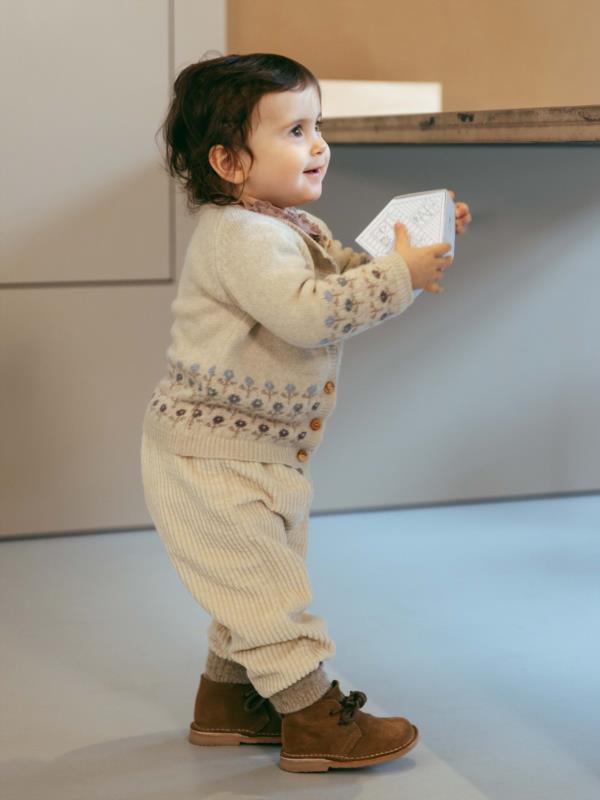 Pantalón pull-up de terciopelo acanalado 100% algodón orgánico. Detalle de cordón con pompón con un toque de lana y cachemir.