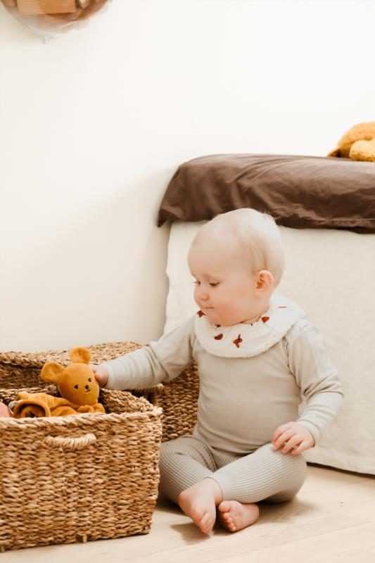 "Our Ruffle Bib has the cutest design details and is at the same time practical. The bib has terry on the back side, which makes it stay in place and gives it a higher suction power. This 3-pack contains a pack with three Ruffle Bibs in beautiful tones and a print. Age recommendation 0m+"