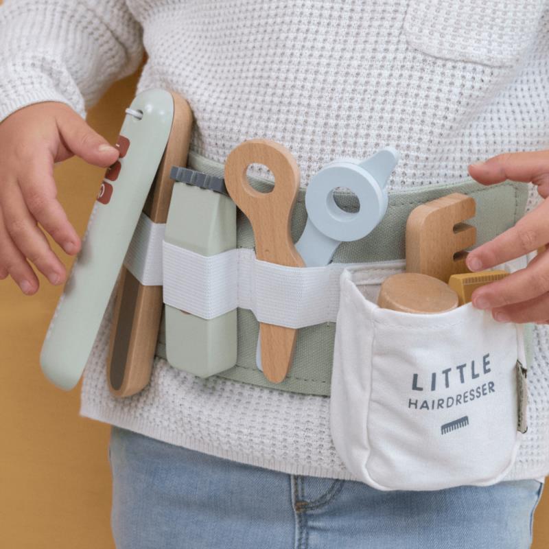 Set de peluquería de juguete con cinturón de la marca Little Dutch. Sus accesorios son en madera. ¡Una monada!