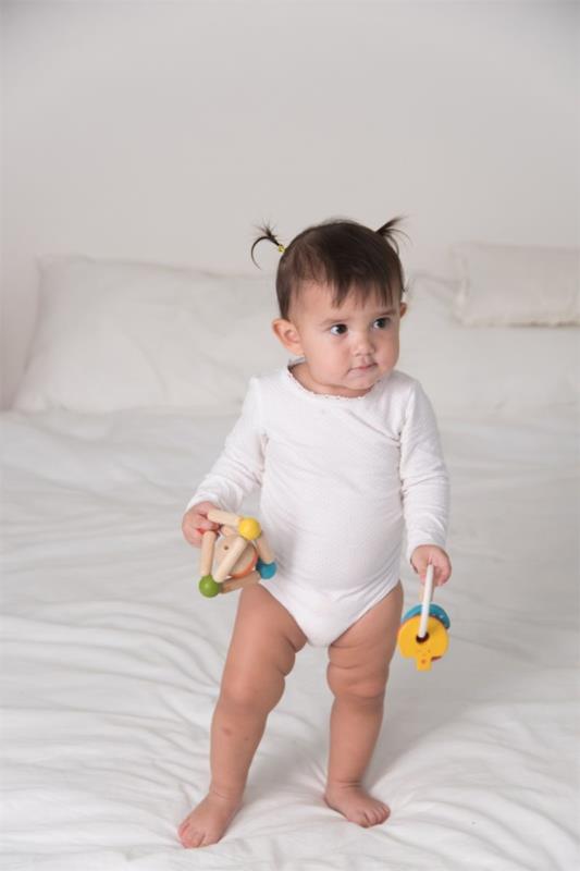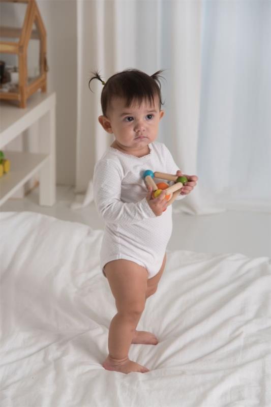Este juguete de agarre con forma de triángulo viene con una bola de dos tonos que es desmontable y también se puede jugar como un sonajero.\n\nMejora las habilidades motoras finas mientras el niño lo agarra y mueve.